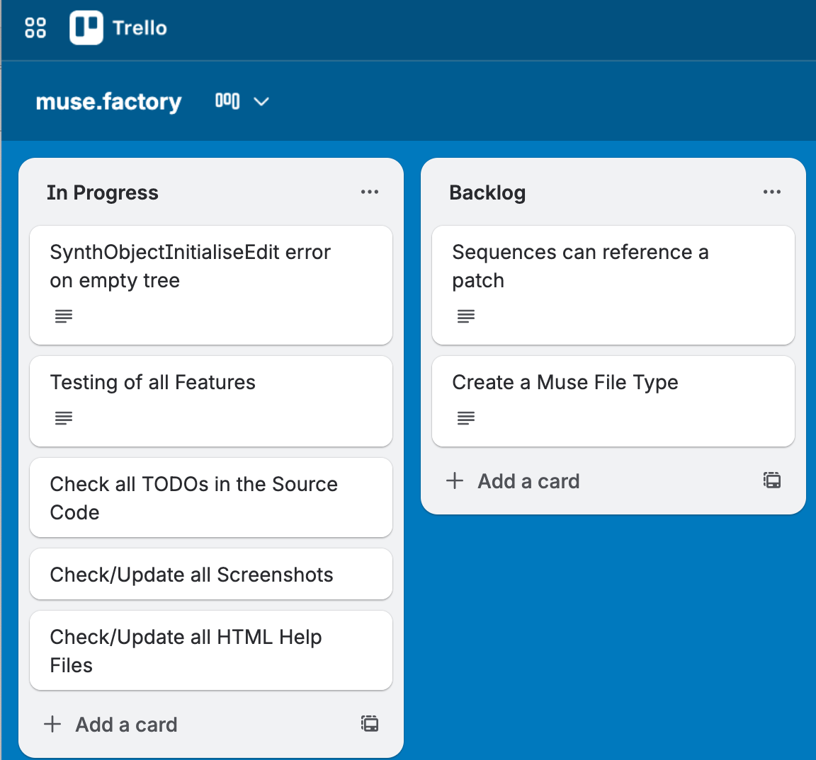 I’ve just finished sorting out the new tool chain for building - it is amazing how much “breaks” as tool versions move forward that then needs fixing! So once I have applied the new “build chain” to all of my current librarians, it will be back to muse.factory in the time I am spending on programming for the rest of the holidays.