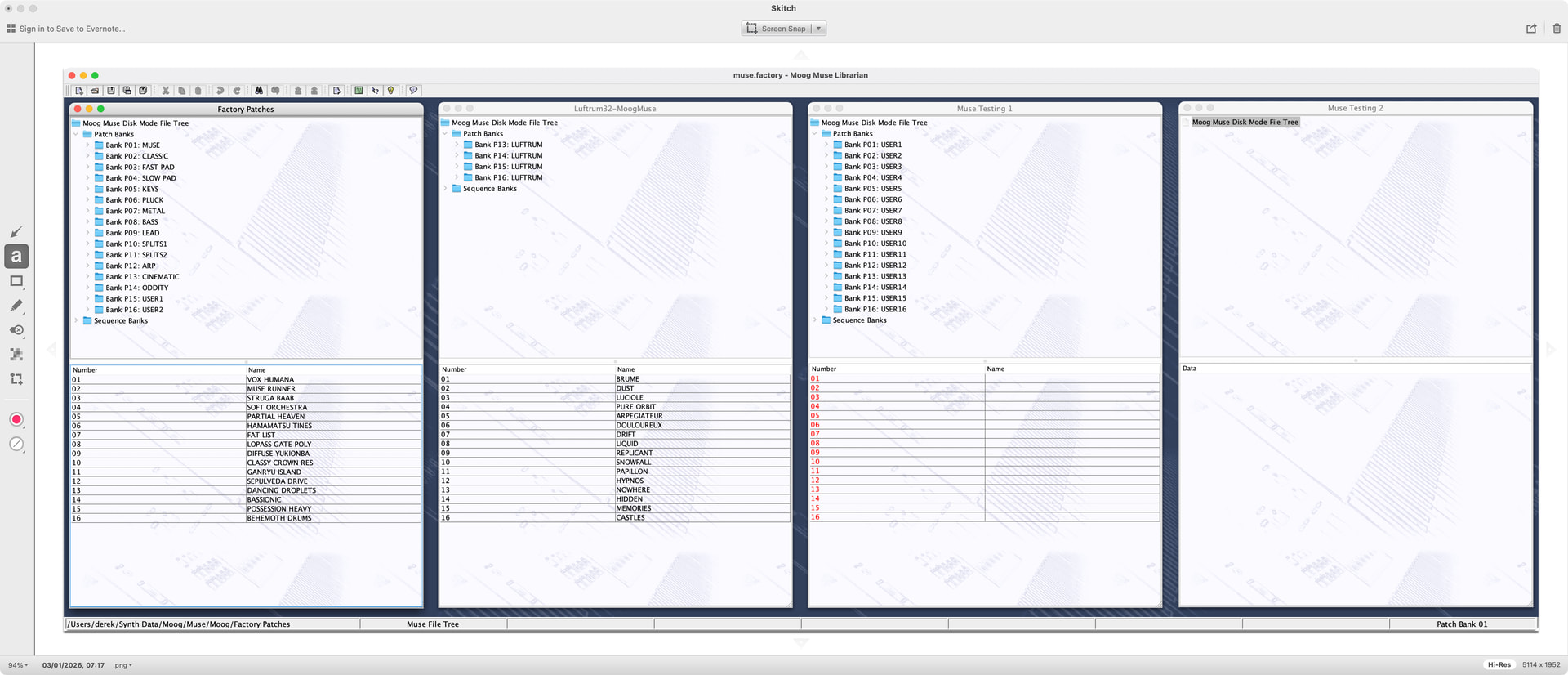 Looking at the Muse Sequences (which I have not really used much), it looks like Sequences can store a reference to a Patch, so it would be nice for Sequences to updated if Patches move about, but that will require a lot of effort to understand more of what is in an MMSEQ file, and the fact that Moog use text based files makes it harder than if I was just “peeking” and poking” a few bytes in a binary format. So I will probably leave that until a later beta release and not support it in the first one (I am guessing nothing else is doing it right now, so when I do get there it will be “the icing on the cake”!).