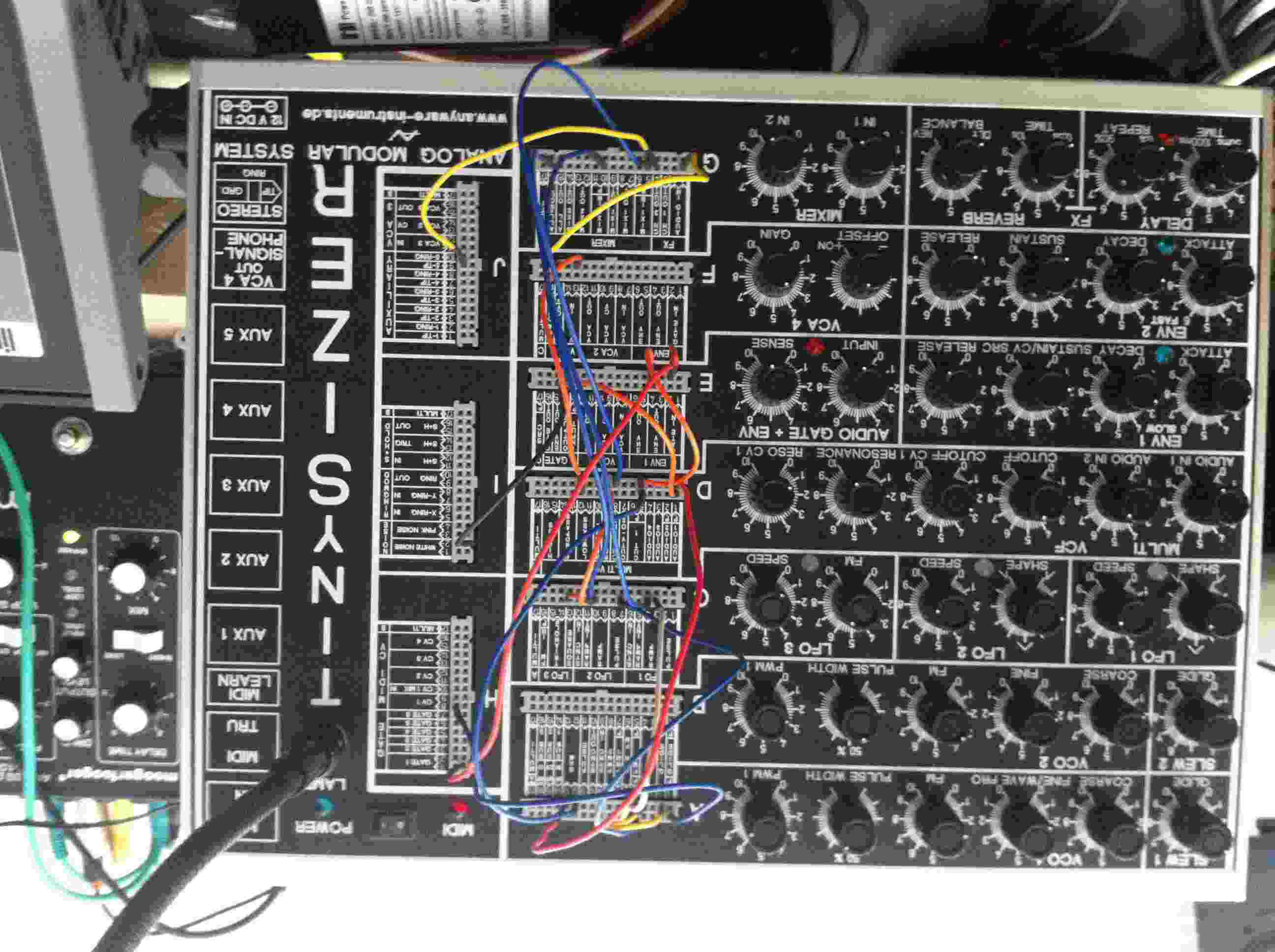 MVXL, MLPS2, AccessVTi2K, Korg MS2000, Novation K-Station, Alesis QS6.2, Arturia MiniBrute, Kurzweil 2500RS, MF-101,102,103,104M,105M,107,108M, Stuff