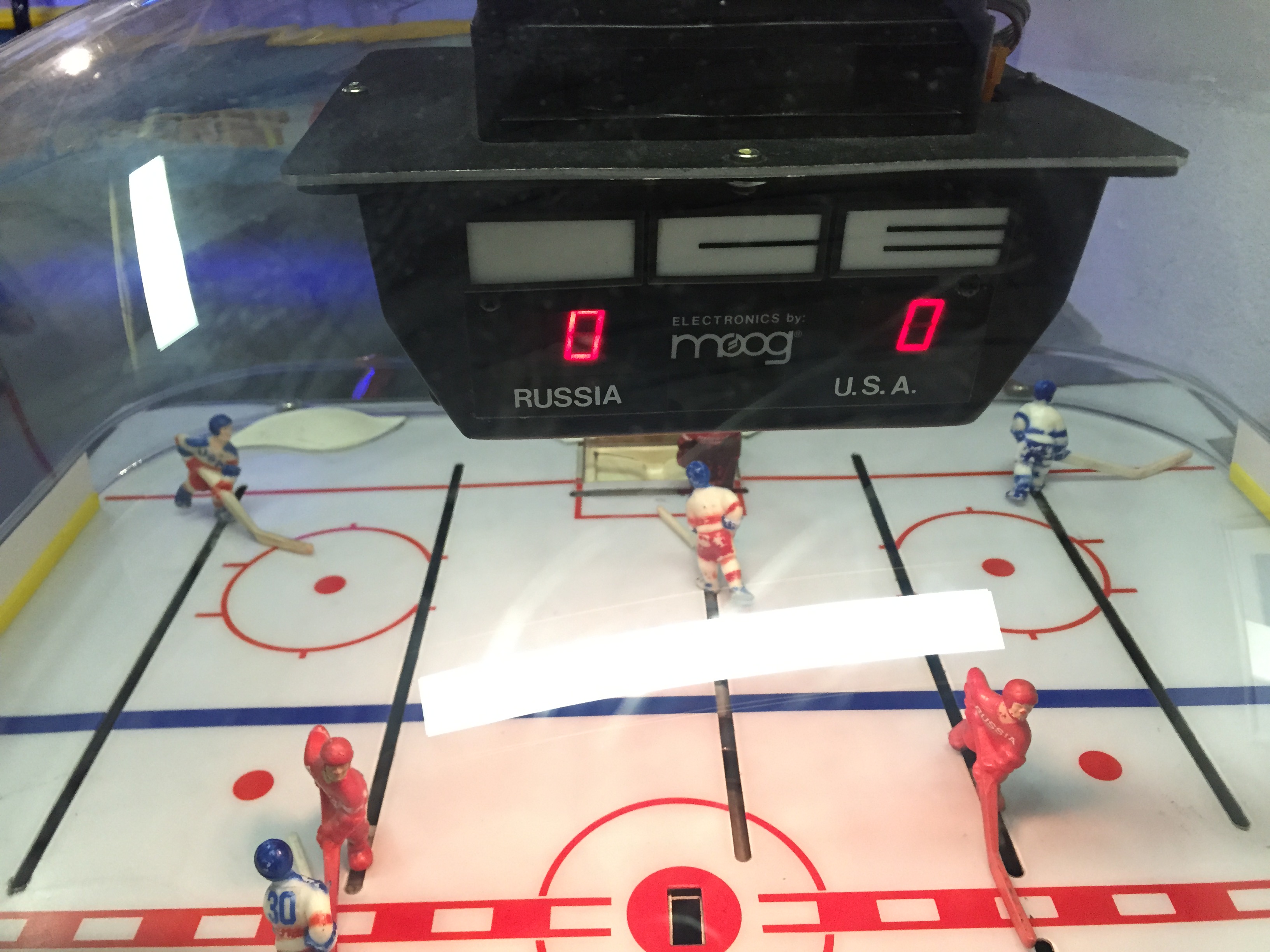 The other day I was playing ice hockey on a "fussball"-like table at an old 70ies sport-center in Switzerland. Have a look who build the electronics for that game. :)