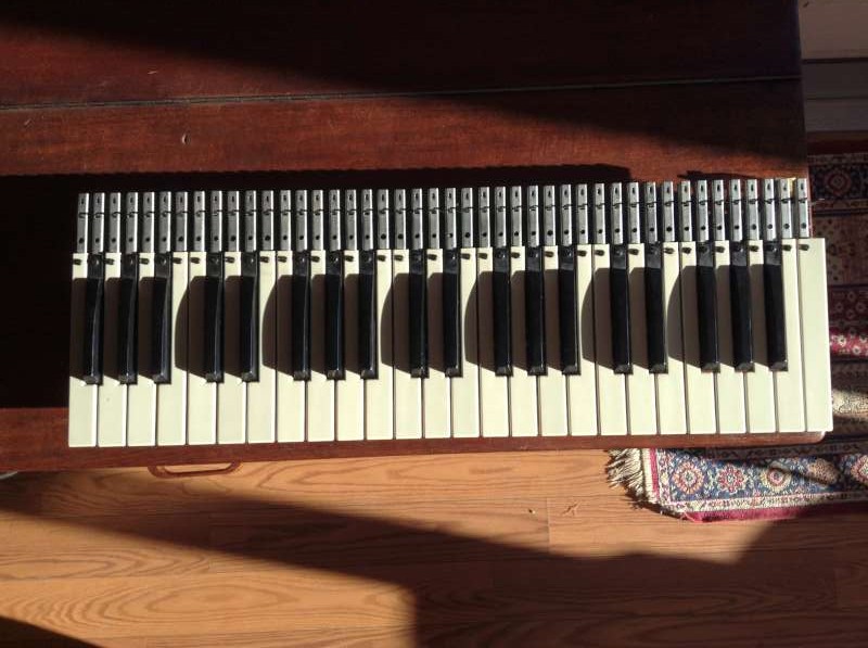 The back story: I rescued the 'brain' and faceplate of a mini from a 70s musical instrument graveyard in a Vancouver basement many years ago, and have restored it to functionality with the help of some great techs, and added a NOS pitch ribbon controller. I have an original wood case for it. Unfortunately I have been unable to find a Pratt-Read keyboard, or an equivalent keyboard solution, to complete the puzzle. While it's something I hope to do (it's a fading hope), I'm also exploring interim (tho realistically probably long-term) solutions.