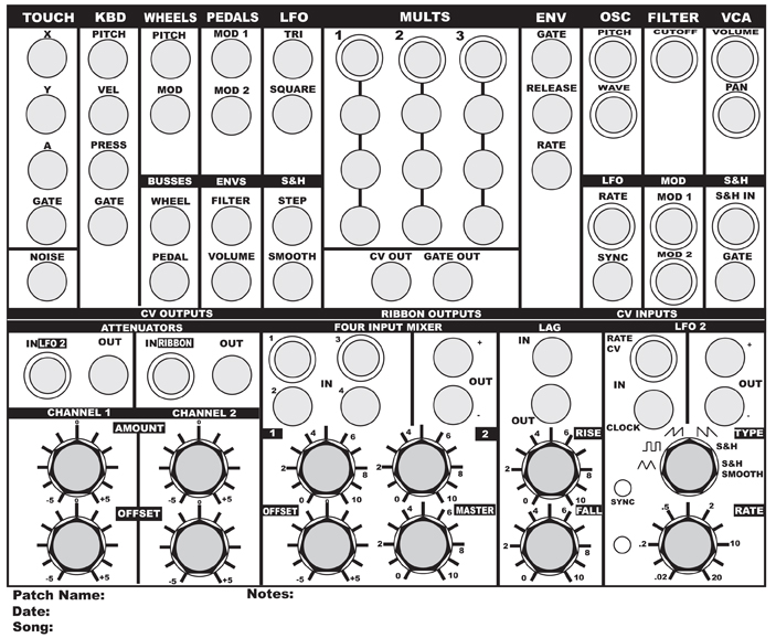 Sadly, I discovered in my XL owner's manual there was no patch-panel template of which I could make copies. I could not find one in here or on Google. ( the one on page 36 of my manual is a photograph and not practical for scribbling down patches.