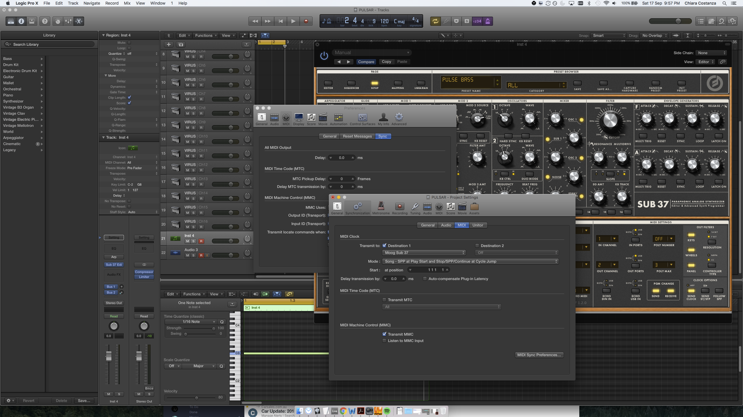 2. Is it possible for the Sub 37 to sync with the tempo set in Logic? I clicked the sync button but it doesn't seem to follow the tempo?
