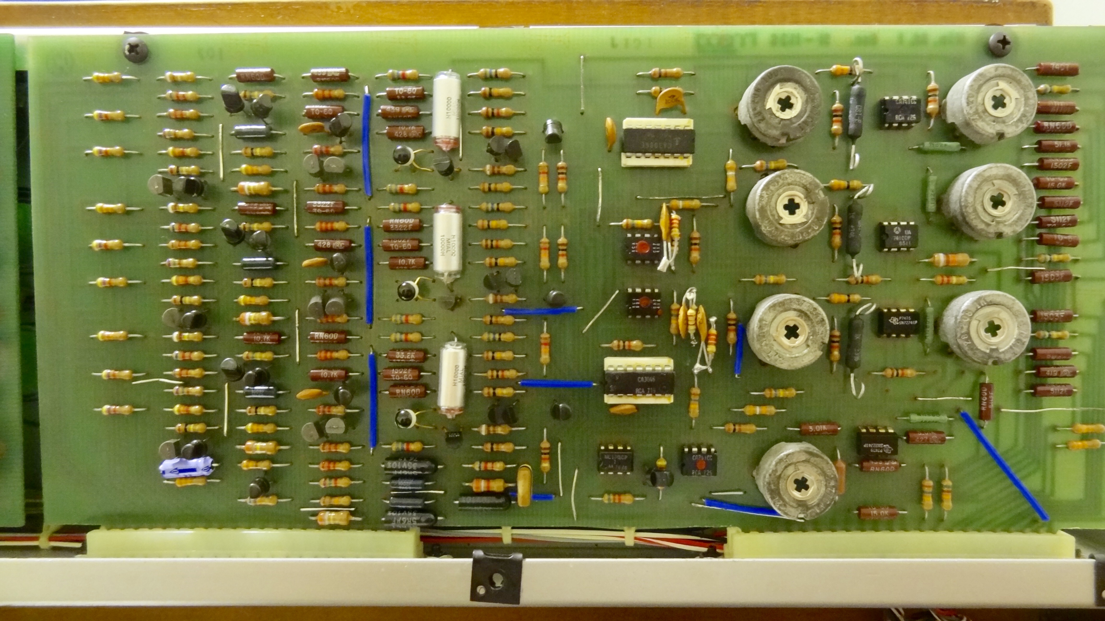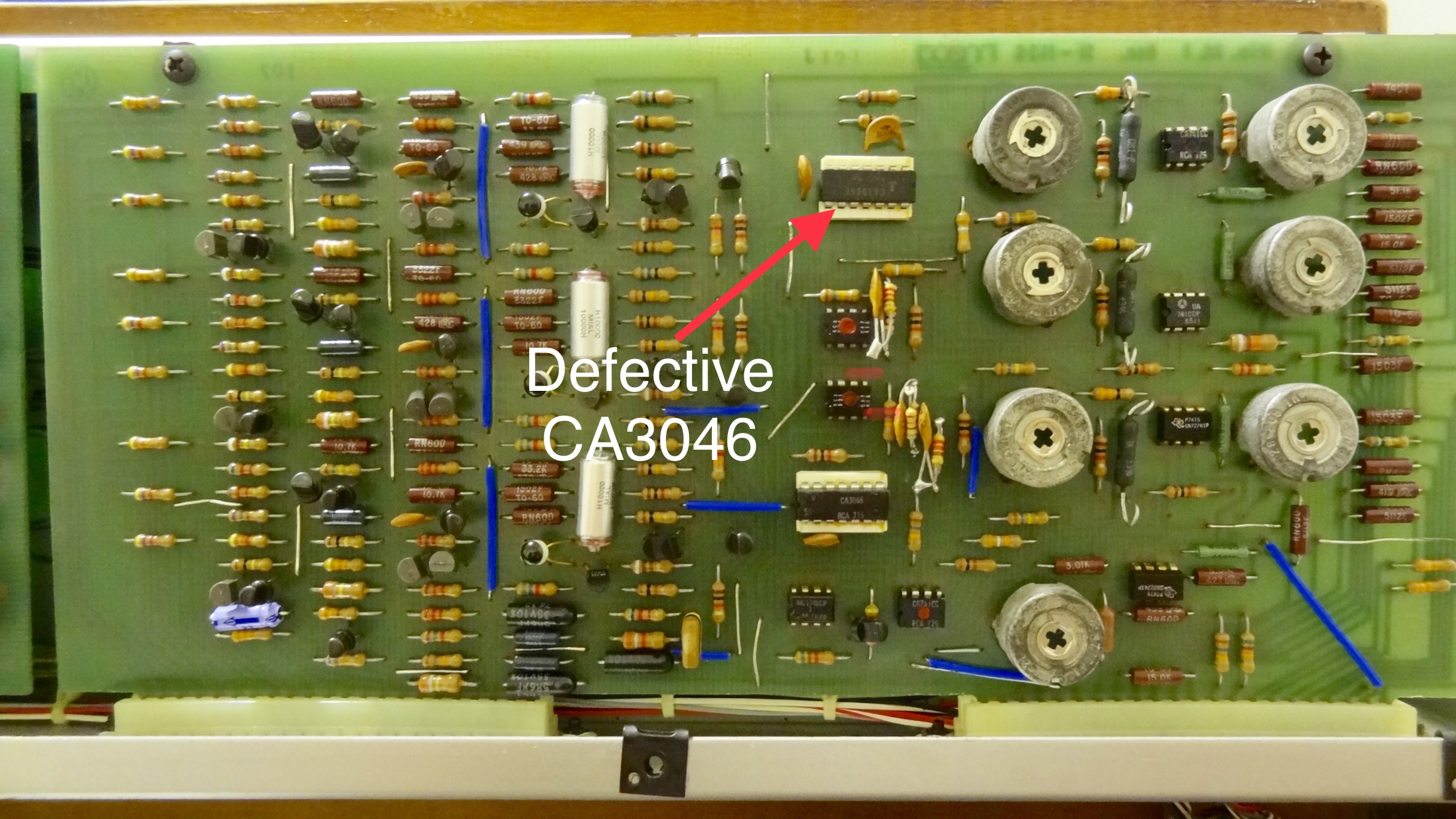 Well, after 2 years, 3 months and 25 days, I have a fully functional Minimoog again. It turned out to be a bad CA3046 ic. One side benefit is that in the process, I cleaned, checked and tightened up everything that needed it before finally getting to the real cause. There are a few loose ends that need attention, but it’s sure great to hear all 3 VCOs cranking away again :D