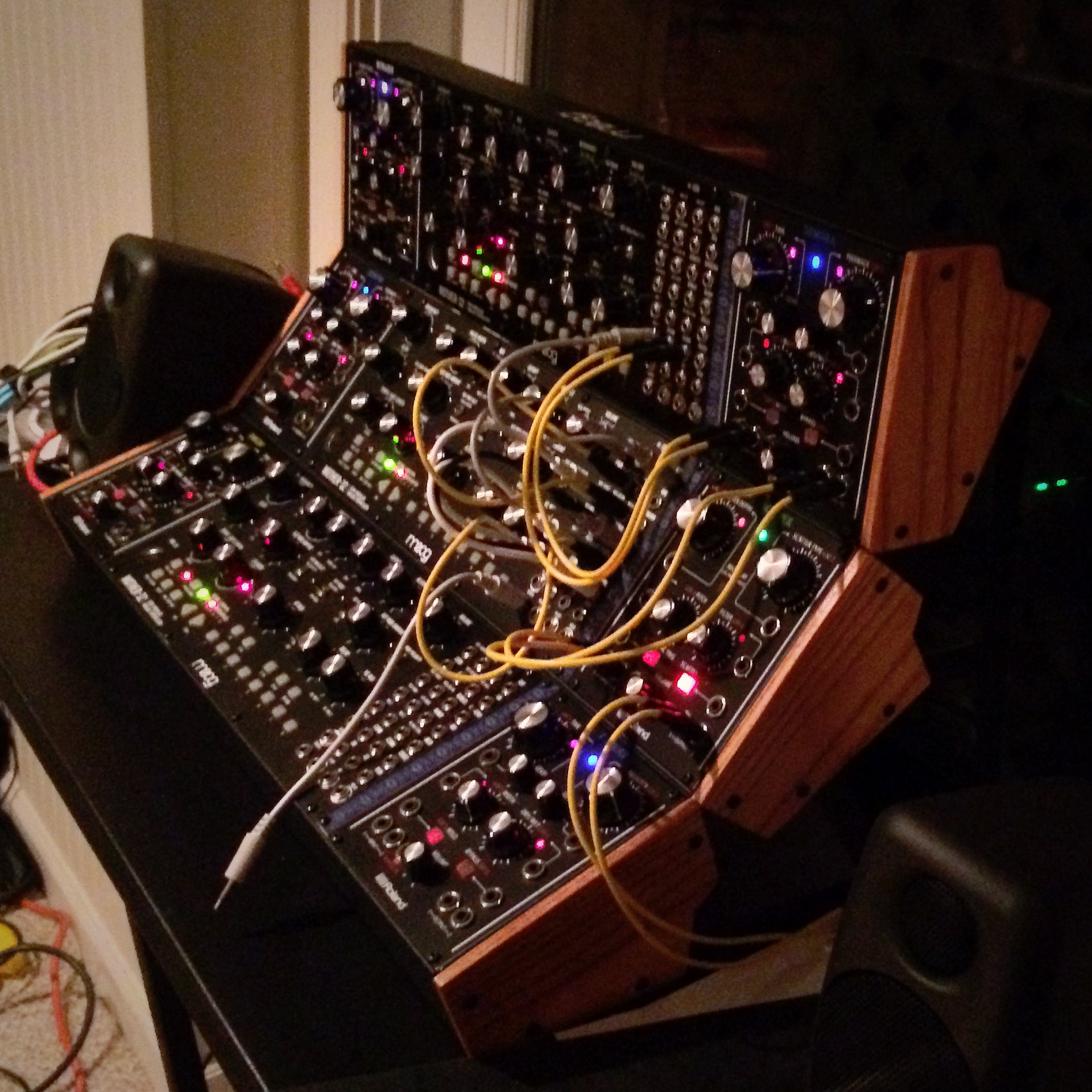 The wooden end panels (made by a neighbor to match my Moogerfoogers and Subs) were mounted on the outside of the black 104HP 3-Tier Rack to show off the wood better. It takes some force to get the final frame screws into the base of the frame (since the width of the 3-Tier Rack is now a little less wide), but it was worth the small effort.