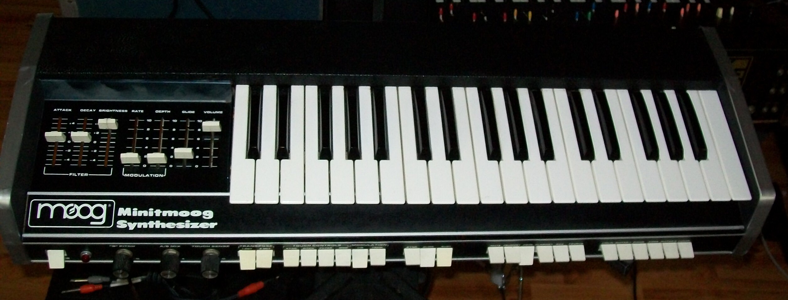 MinitMoog in real good physical shape.....everything works except the touch sensitivity (duh)....pitch drifting a little....in the shop to get her up to speed !
