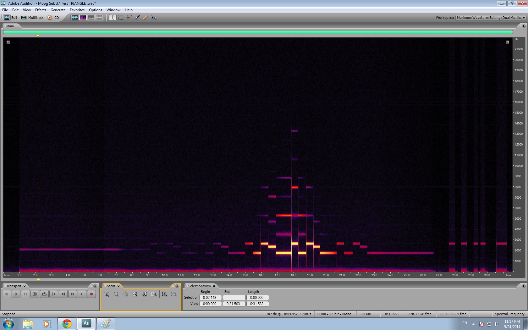 From a technical point of view, however, I do want to hear a reply from Moog regarding this artifact. I agree that it does not seem like the kind of sound one would expect from brand new oscillator chips. It is puzzling that it only occurs on the triangle / saw side of the fader - for me the sound fades out as you sweep from the saw to square wave.