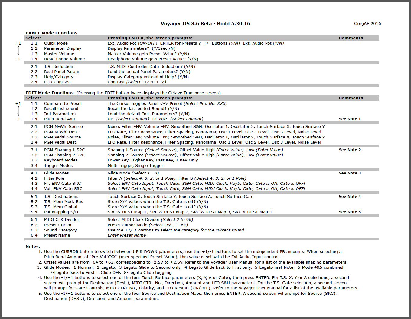 Attached are the latest Voyager menu charts for the current OS3.6 Beta - Build 5/30/16, which list the commands in all three menus (Panel, Edit & Master). You can use the chart to compare with your OS version to decide if any feature changes warrant an update on your Voyager. I had promised Rudi that I would create an updated menu chart (the last one I did was for OS3.4), so I didn’t make any attempts to dif this with earlier beta versions of 3.6.