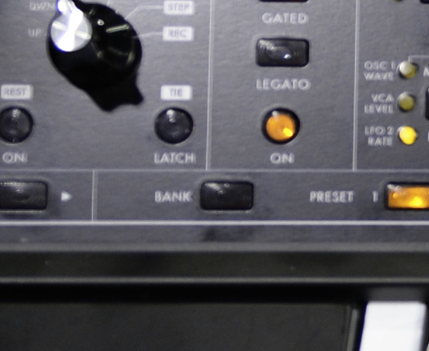 Comparing to older pictures of the front panel, I notice that mine has a line between the [Latch] button and [Bank] button, labeled step.