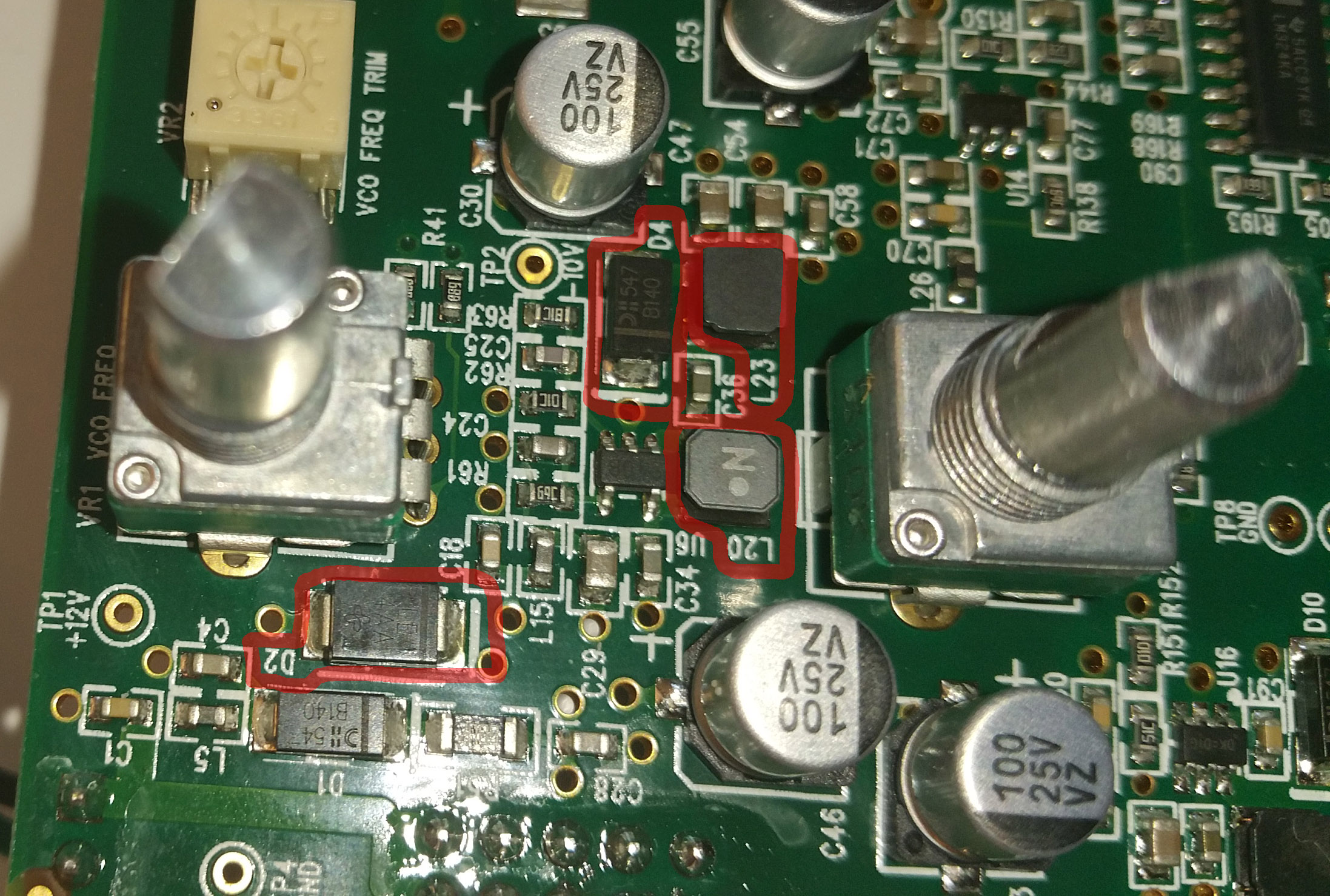 I've checked the diodes, resistors and capacitors in that area and I'm suspecting one of the following two diodes and coils: