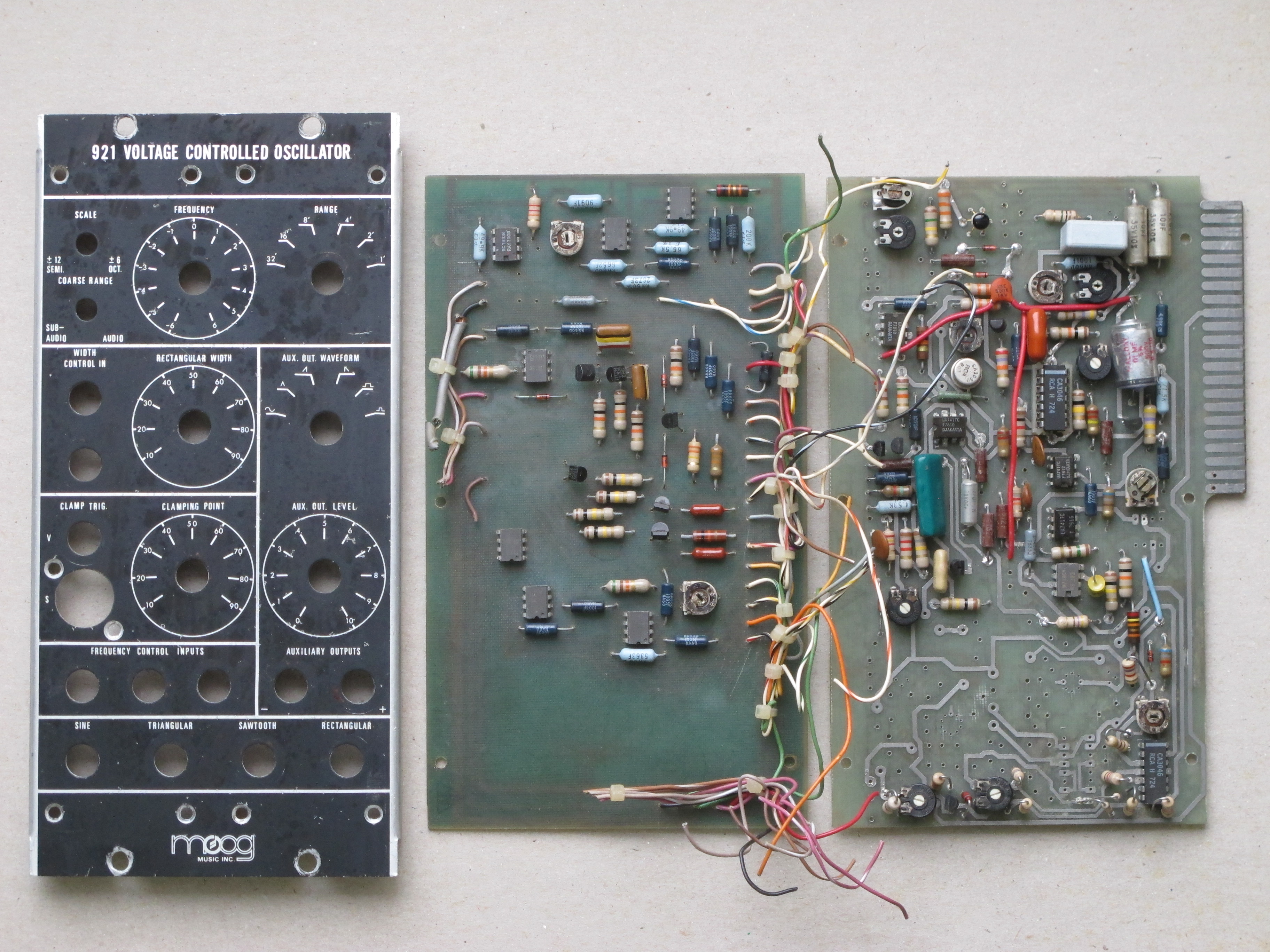 A number of years ago I bought a large batch of Moog related parts and pieces from an Ebay seller. I got several boxes of transistors, wirewound trim pots, capacitors, jacks, C-frames, some blank panels, etc. I also received parts for a 921 VCO consisting of a front panel and two circuit boards, and nothing else. The VCO parts sat in a box on a shelf for well over a decade, I knew putting it back together would be a lot of work and would be time consuming so I kept putting it off.